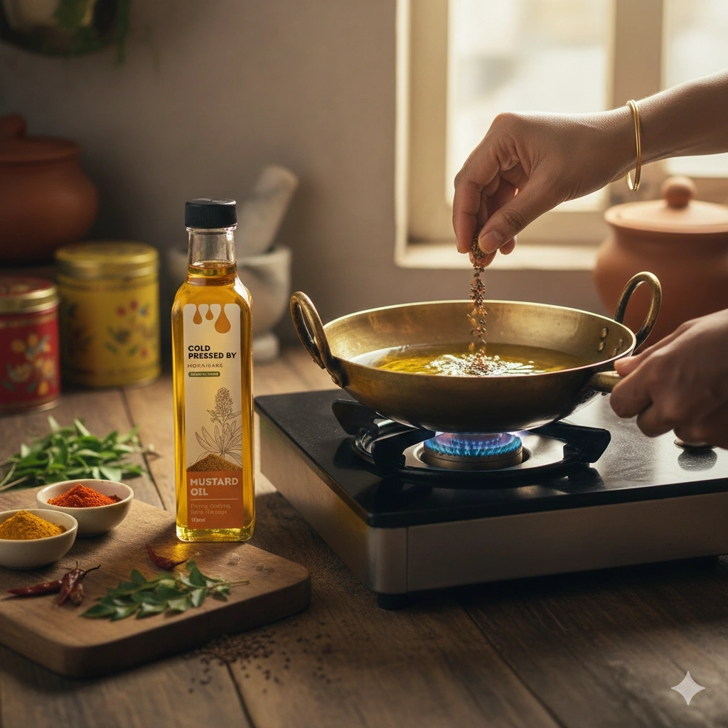 The mustard oil has a strong, earthy fragrance that’s typical of traditional cold-pressed mustard. It packs a punch of flavor in cooking, especially in Indian and South Asian dishes. It adds depth to stir-fries and dals, and a little goes a long way. For hair, it gives a warm, invigorating massage feeling and helps with dryness.